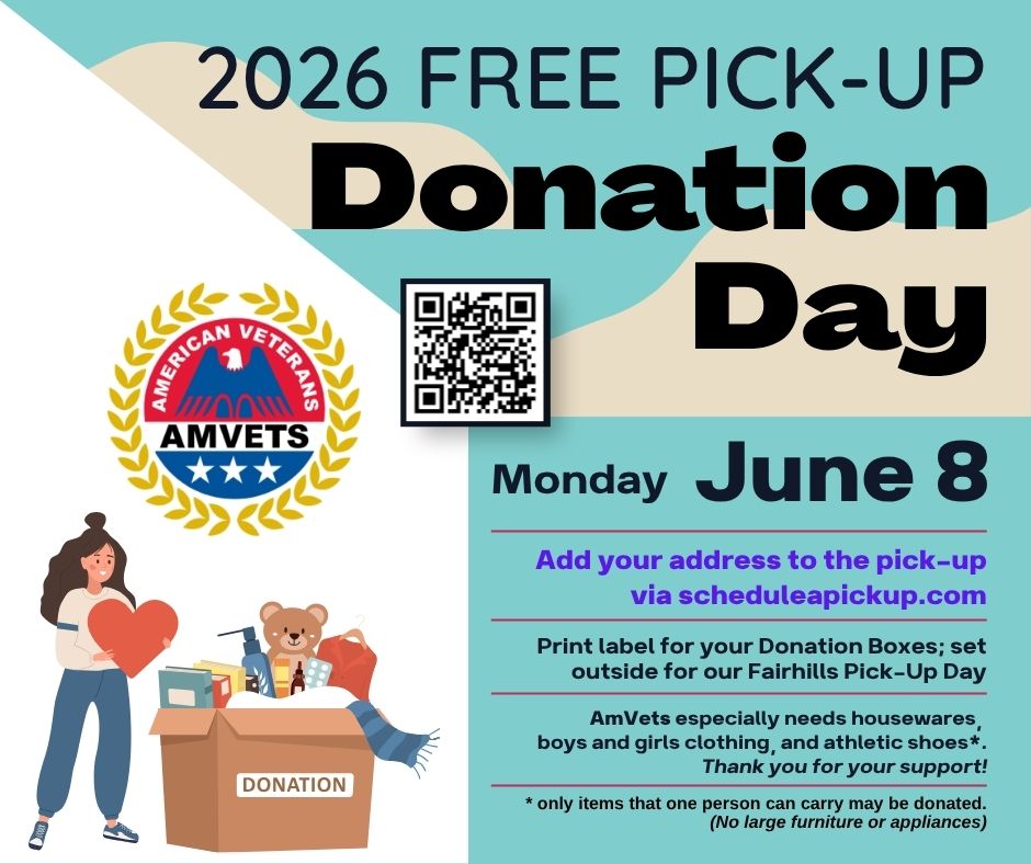 AMVETS will pick up donations Monday, June 8 — right from your driveway or porch.